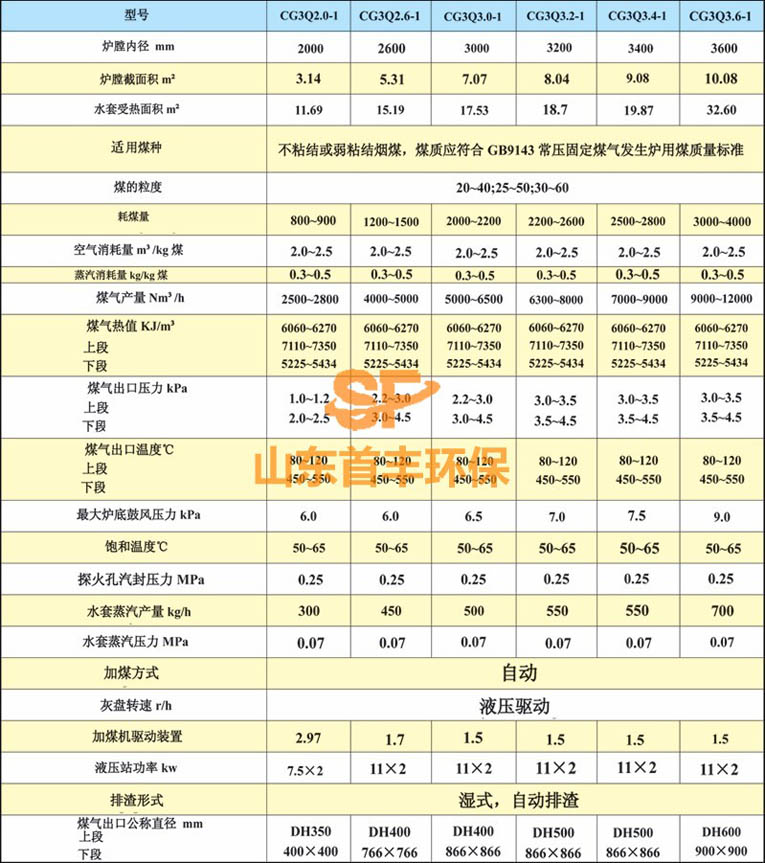 兩段式煤氣發生爐技術性能參數: